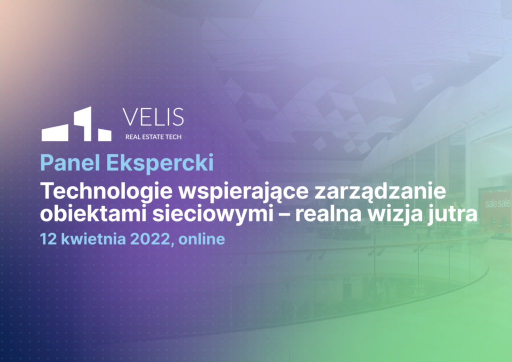Panel Ekspercki „Technologie wspierające zarządzanie obiektami sieciowymi – realna wizja jutra” to wydarzenie organizowane przez firmę Velis Real Estate Tech, które odbędzie się już 12 kwietnia online. To okazja do posłuchania ekspertów reprezentujących firmy będące jednymi z największych graczy na polskim rynku retail, takich jak między innymi LPP, Empik, czy Auchan.